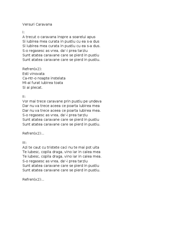 Versuri Caravana
