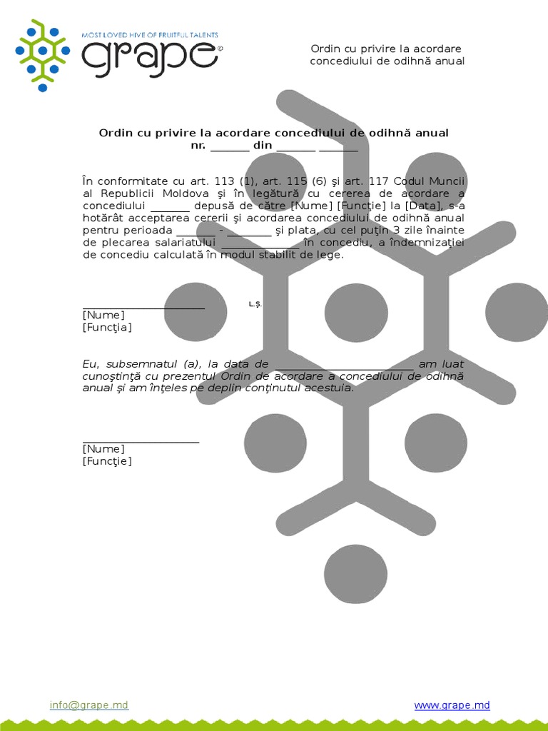 Ordin Cu Privire La Acordare Concediului De Odihna Anual