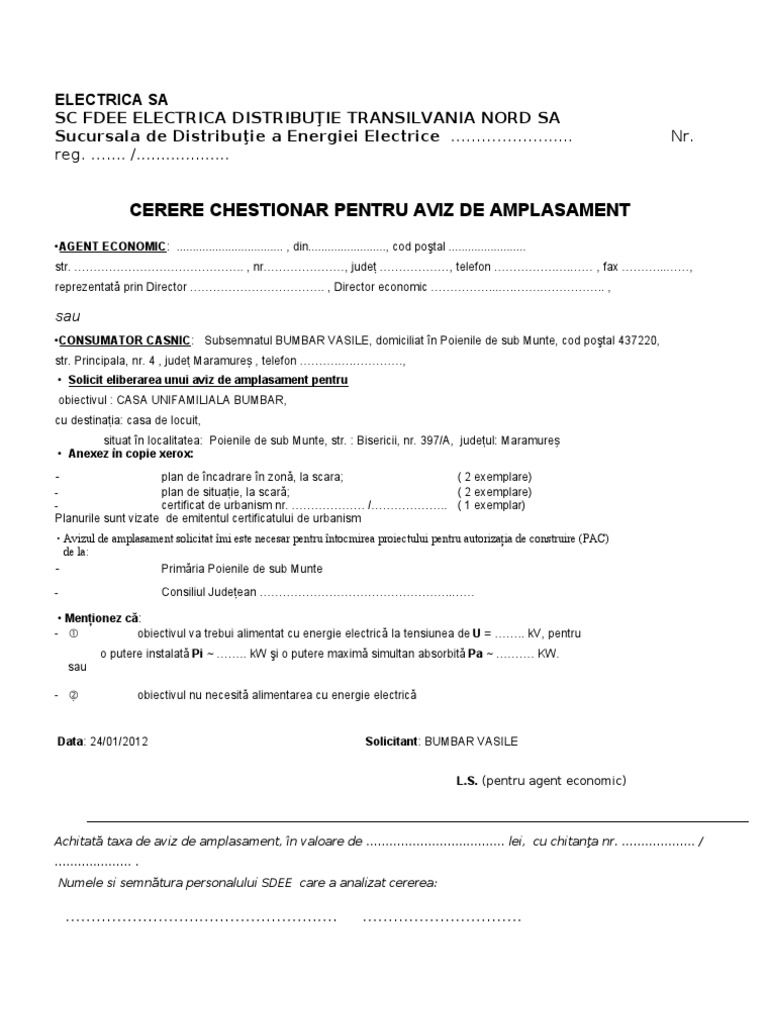 Cerere Aviz Amplasament Eon Energie Casnic