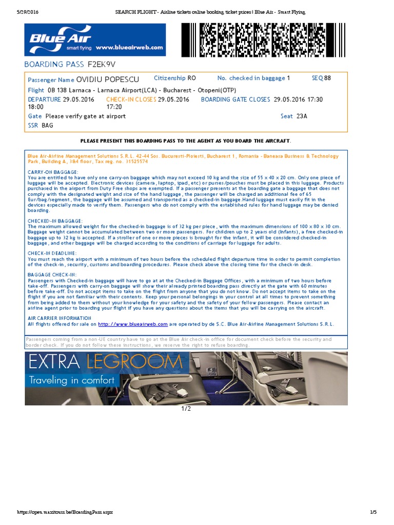 Blue Air Boarding Pass