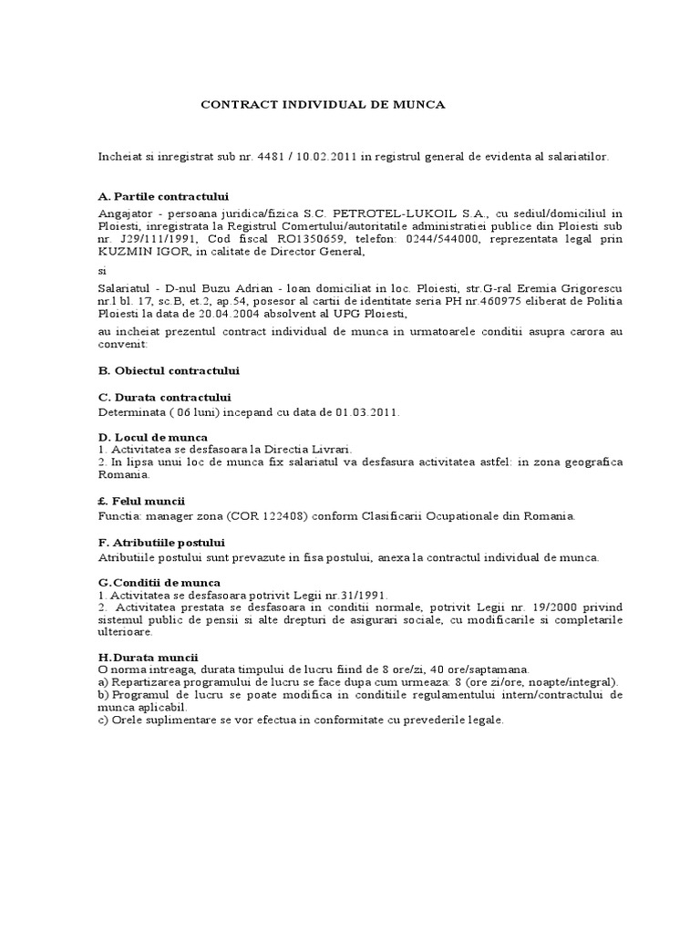 Ghid Pentru Completarea Unui Contract Individual De Munca