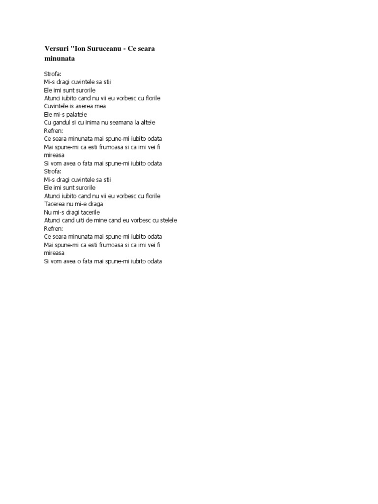 Ion Suruceanu Ce Seara Minunata Lyrics