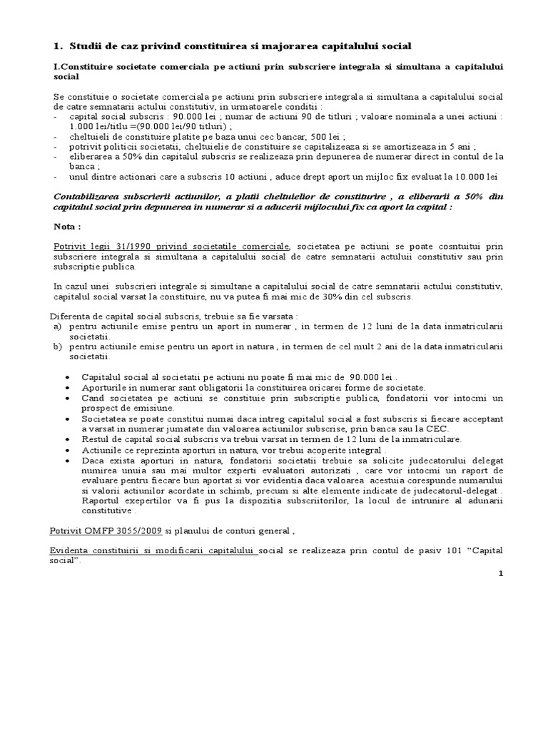 Majorare Capital Social Prin Aport In Numerar