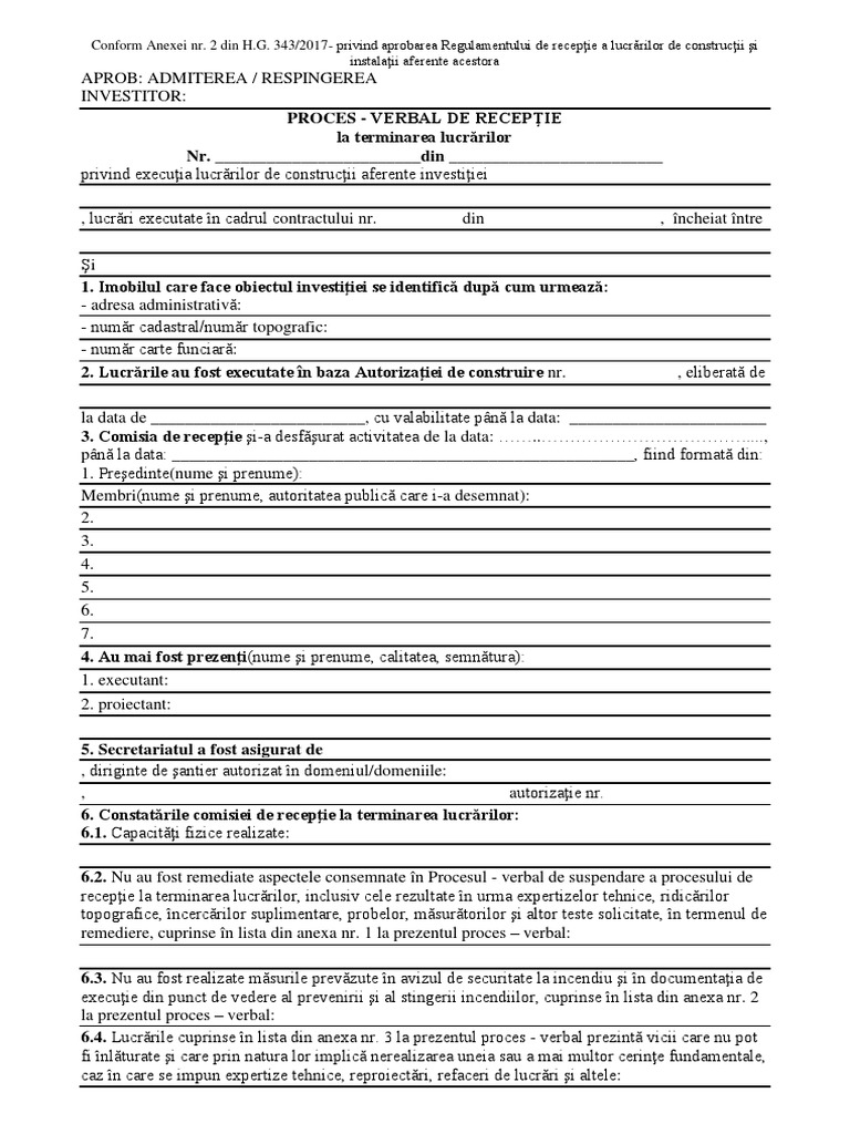 Doc Proces Verbal Receptie Lucrari Colegiul Tehnic Al Dirigintilor De Santier Hg Turtoi George Academia Edu